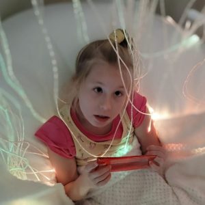 is an eight-year-old girl with childhood autism and severe intellectual disability, for whom safe transportation to therapy sessions is essential.