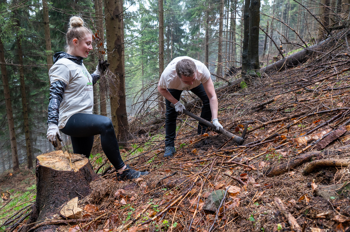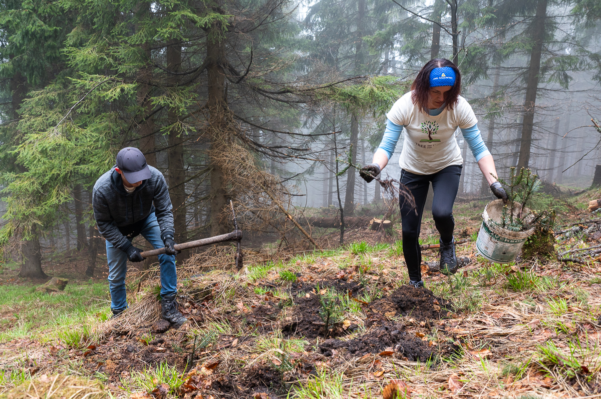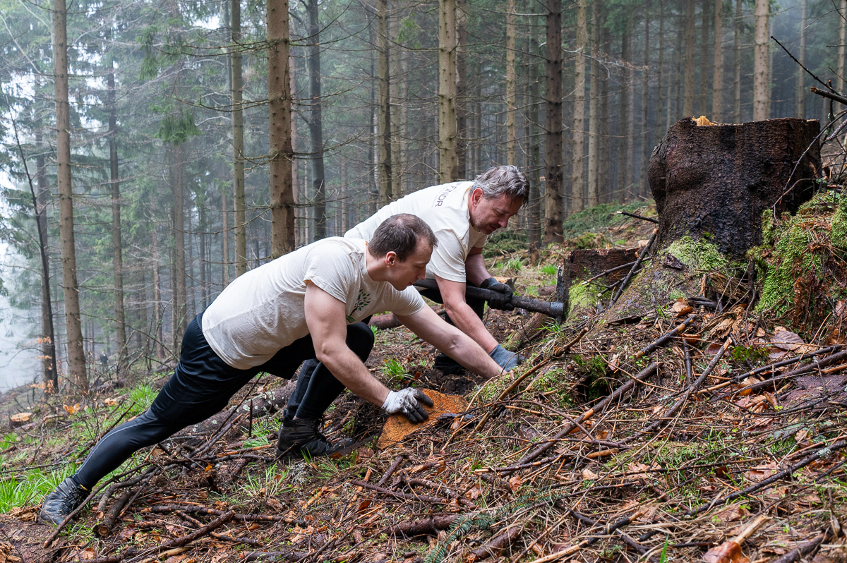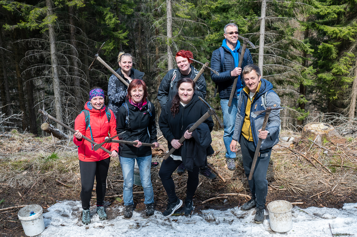 For the second year, we plant one new tree for every order. Together with a non-profit organisation, we have planted more than 15,000 trees. At the end of April and the beginning of May, the fifth and sixth tree planting took place with the involvement of our employees. After Smrčina and Velký Javorový, this time we went to the slope of Mount Šindelná at an altitude of around 900 m above sea level. Here, where until recently only a thinned spruce monoculture was present, we set out to plant the native species that belonged – beeches and firs.
